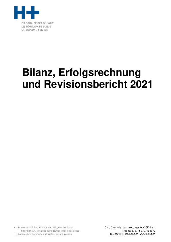 H+ schliesst das Berichtsjahr 2021 mit einem Jahresverlust von CHF 141'327 ab, dies verglichen mit einem budgetierten Verlust von CHF 249'889.